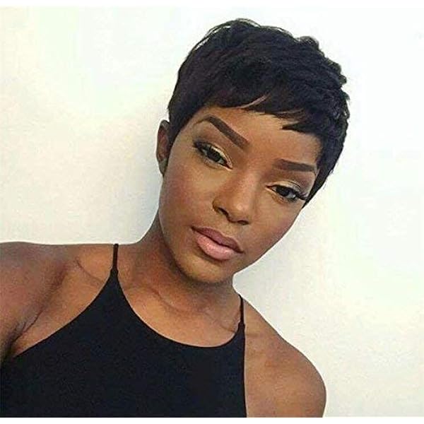 Amazon Com Waveme Short Cut Human Hair With Bangs Pixie Wigs For Black Women Human Hair Glueless Straight Brazilian Hair Wigs Black 1b Beauty Personal Care
